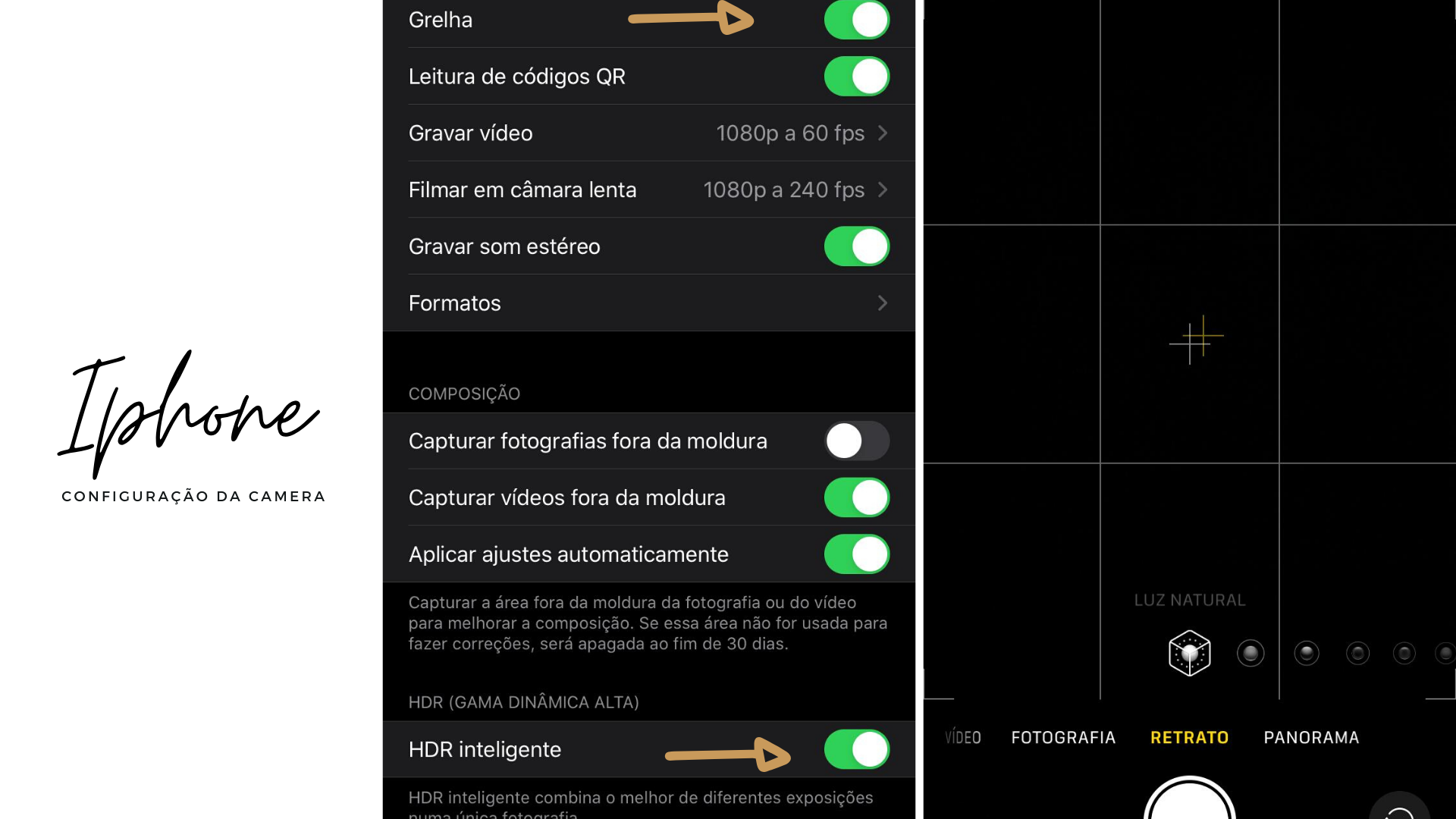 Dica: Se o seu celular tem a opção de ‘modo retrato’ essa seria a melhor opção para deixar com a luz natural. Como nos exemplos abaixo para Android e Iphone.