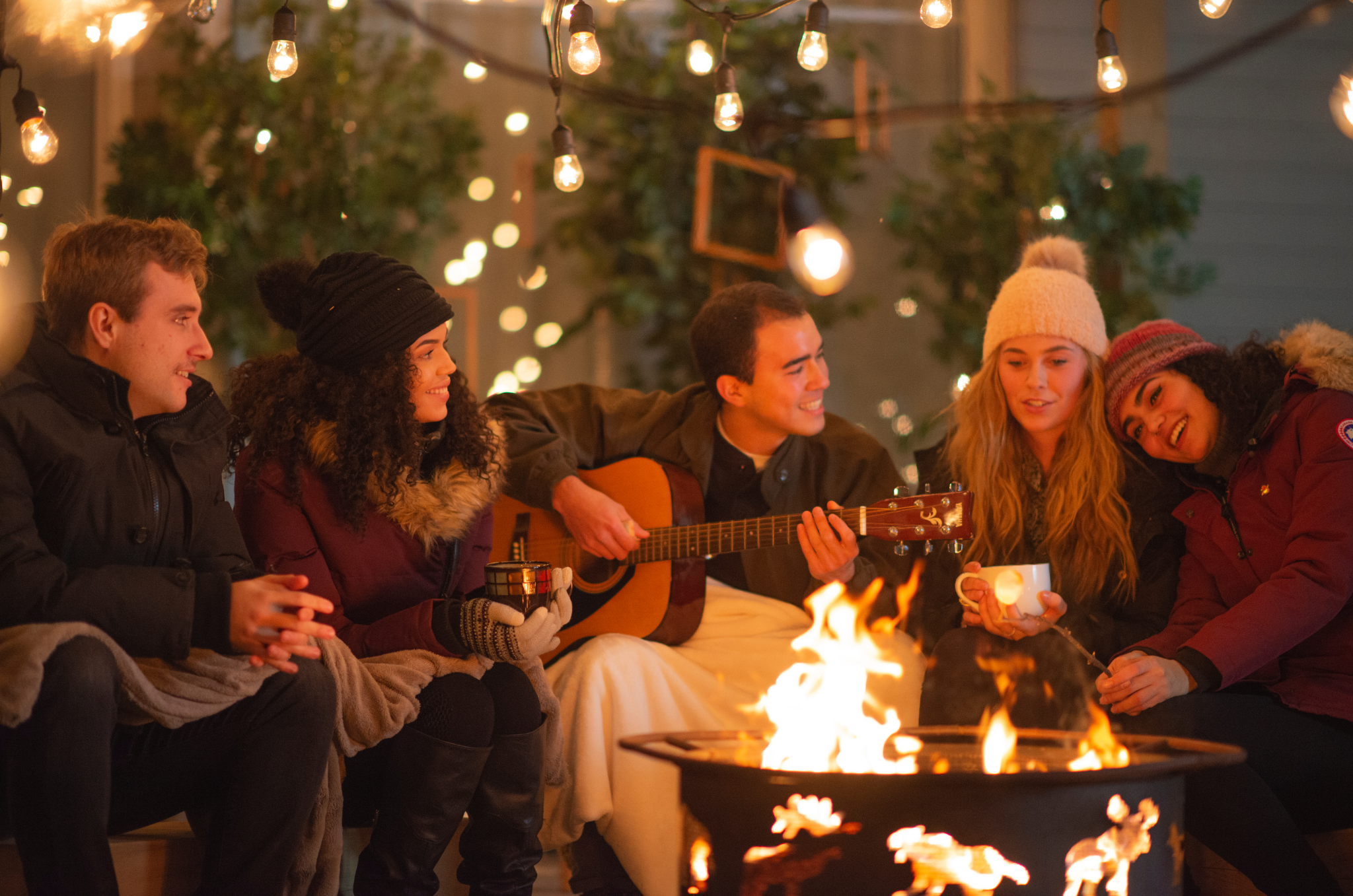 O ideal é que você more em uma casa com quintal, ou pode fazer na casa de algum parente também. Juntar alguns galhos, gravetos e acender a chama. Em alguns minutos você terá uma fogueira para se aquecer um pouquinho, em estilo americano. Lembre-se de se agasalhar bem e garantir que todos os outros ao redor também estejam. Vocês podem tocar alguma música, ou colocar alguma caixinha com uma playlist bem animada, assar marshmallows, e tantas outras coisas legais ao redor da fogueira.